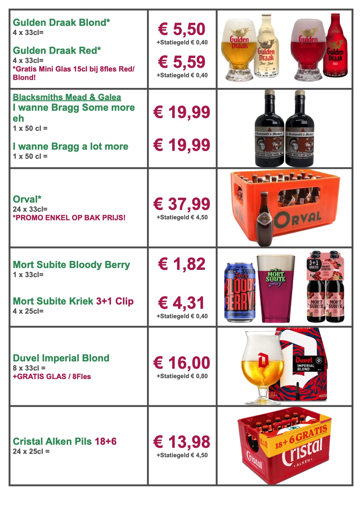 Voor Feesten kan u wel nog dranken aankopen enkel volle onaangesproken bakken van 1 soort en type worden teruggenomen binnen de 14 dagen Na aankoop op vertoon van de aankoopbon(of foto vd bon).